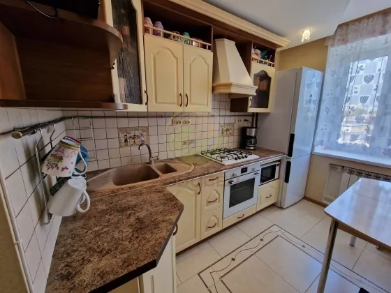 Продам 3х комнатную квартиру. Общая площадь 61.7 кв. метров(68.3 с балконами). Два совершеннолетних собственника, никто не прописан. Отличное расположение - до детского сада 2 мин, до школы - 10 мин, до остановки общественного транспорта 5 мин. пешком. Рядом с домом несколько детских площадок, продуктовые магазины, в шаговой доступности отделение почты и Сбербанка. Недалеко от дома находится сквер Кубяка- отличное место для отдыха всей семьей. Окна выходят на две стороны. Никаких шумных улиц, только дворовая территория. Парковочных мест всегда хватает, при желании в 2 мин от дома есть крытая охраняемая парковка. В доме установлен современный грузовой лифт. Чистый подъезд, хорошие соседи. Квартира находится на 7 этаже 9 этажного панельного дома. На одну сторону дома выходит балкон, на другую - лоджия, они застеклены и имеют общую площадь 6.6 кв. метров. С лоджии открывается потрясающий вид на Азаровский мост. Санузел раздельный. Ванна и туалет в плитке. Во всех комнатах сделан хороший ремонт, натяжной/подвесной потолок с точечными светильниками по всей квартире. В комнатах - ламинат, на кухне и в прихожей - плитка. Установлены пластиковые окна. При продаже остаётся хороший кухонный гарнитур, вытяжка, варочная панель, встроенный шкаф в прихожей ,остальное по договорённости. Квартира полностью готова к проживанию. Отличный вариант для семей с детьми или просто большой семьи. Значимым бонусом является собственная котельная, платежи за коммунальные услуги вас приятно удивят. Продажа от собственника. В посредниках не нуждаюсь. Есть возможность оформить ипотеку под 7.7%, что в текущих реалиях сэкономит вам не один миллион.