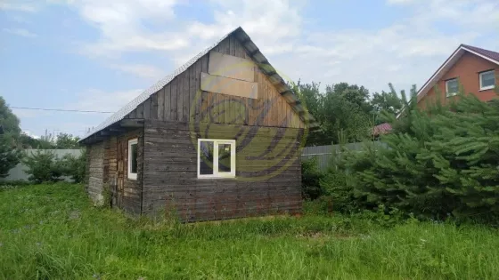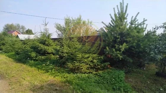 Баня - 3Х5, есть фундамент под гостевой домик. Высокий забор, вдоль которого растут деревья (ели, сосны, березы, грущи, яблони)