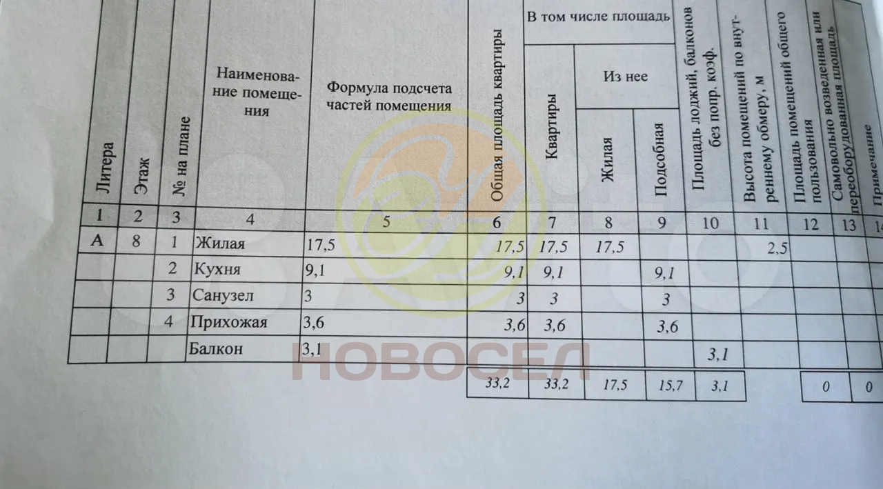| Жилая площадь | 17 |
