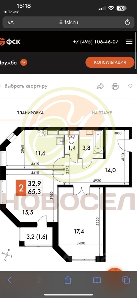 | Площадь, кв.м. | 66 |