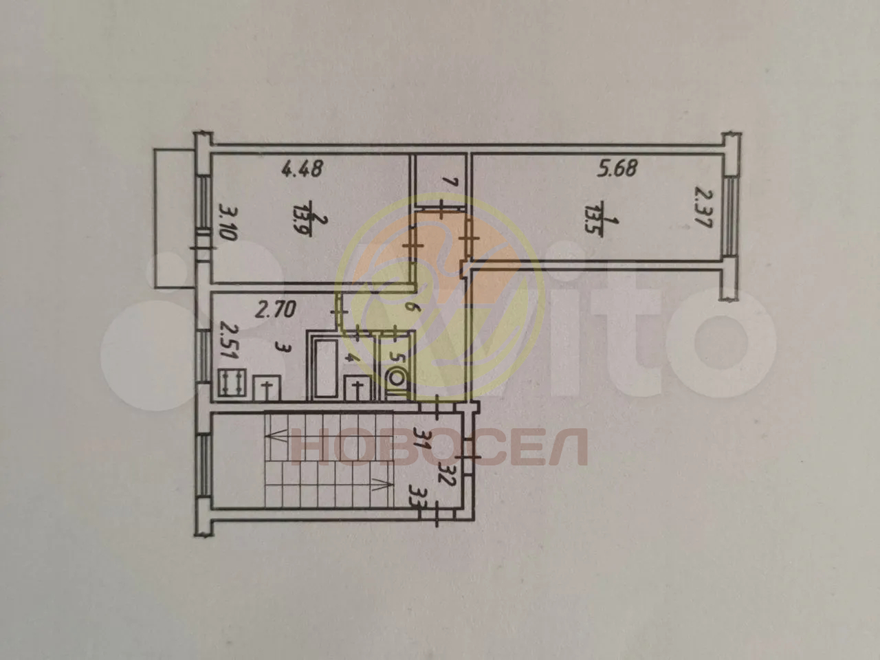 Продается 2-х комн. квартира, 44 кв.м., 5/5 эт