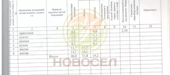 | Площадь, кв.м. | 46 |