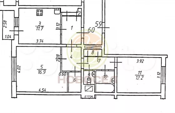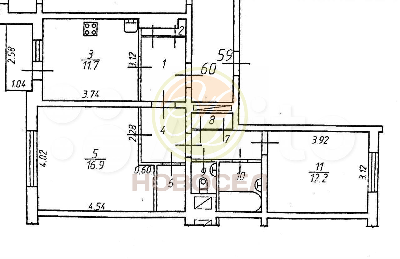 | Площадь кухни, кв.м. | 11 |