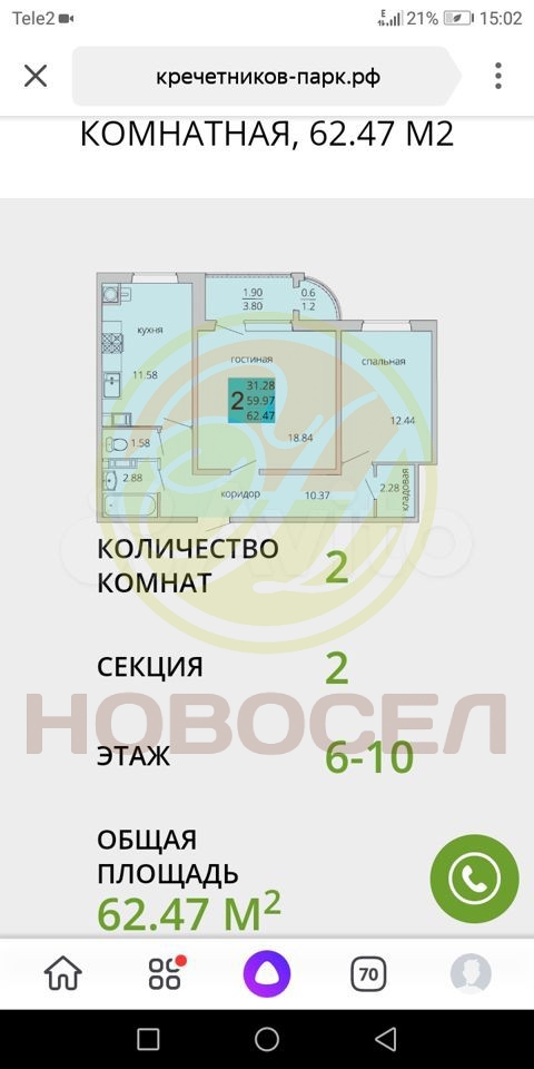 | Площадь, кв.м. | 62 |