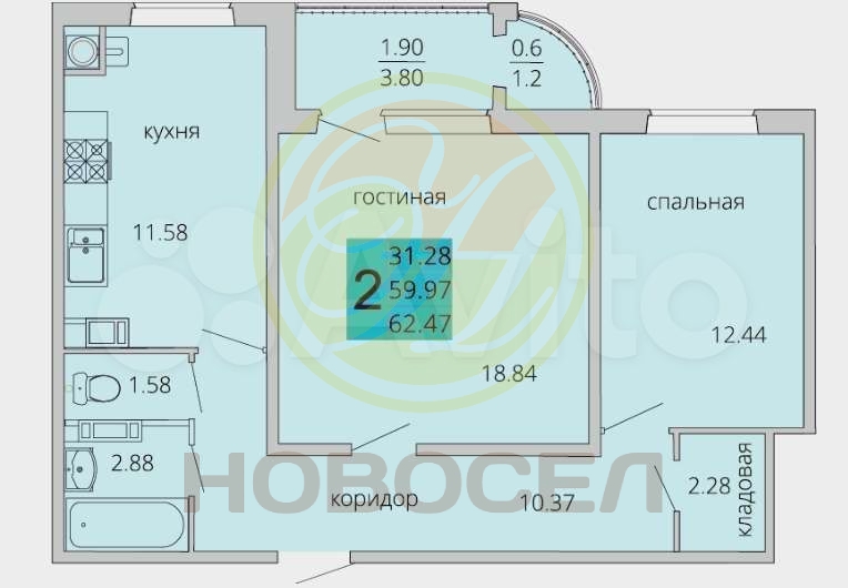 | Площадь, кв.м. | 63 |