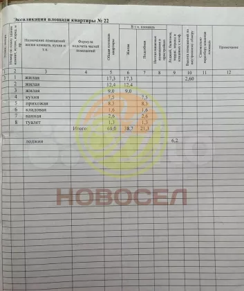 | Площадь, кв.м. | 60 |