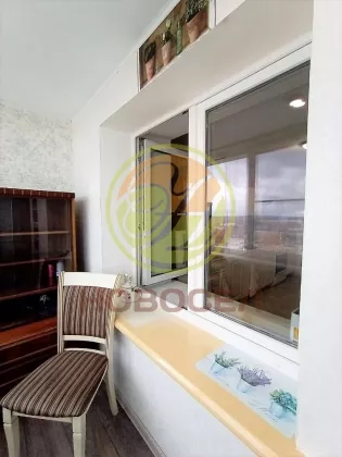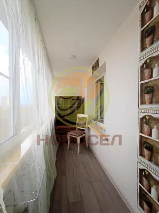 Лоджия утеплена, застеклена энергоэффективными стеклопакетами, с внутренней отделкой и освежением,выведены розетки для подключения компьютера.