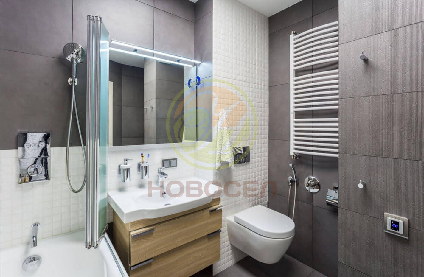 -Санузел совмещенный 3,6 кв.м. в керамической плитке.