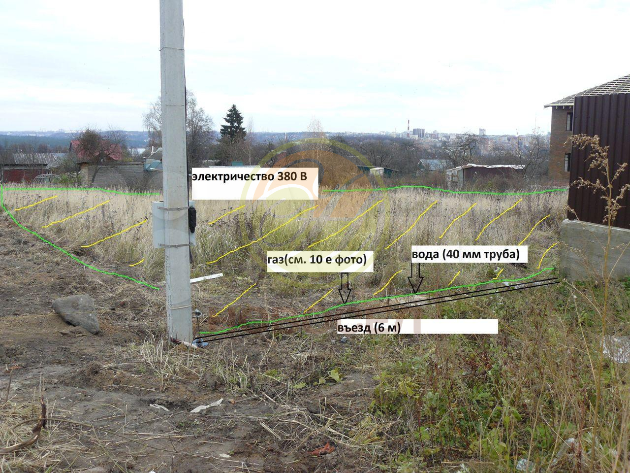 В 2019 году делалась геология и геодезия так как заказывался проект фундамента ибо планировалась постройка дома для себя. Грунт на всём участке родной, никаких подсыпок, свалок, выравниваний не было. Зарослей кустов и деревьев нет. Только трава не кошена. Электричество. Есть столб со счётчиком и лицевым счетом. Газ. Газ уже заведен на участок. Подписано доп соглашение о продлении подключения до 31.12.2021, так как Газпромраспределение свою часть договора выполнила и газ можно заводить в дом, когда он будет построен. Вода. Вода (40 мм труба) также заведена на участок, лицевой счёт создаётся, когда подключается дом, поэтому пока лицевого счёта на воду нет, так как не строения. Канализация. Можно подключиться к городской канализации и поставить КНС, так как труба находится вдоль асфальтовой дороги выше участка на расстоянии примерно 80 м., кто-то ставит септики, кто-то, кто ближе к трубе, подключается к городской канализации. На дату 23.10.2021 сосед левее (ближе к комплексу Квань) возводит забор, будет строиться, после этого 90% территории участка станет огороженной. Т.е. останется огородить около 20 метров на северо-востоке.